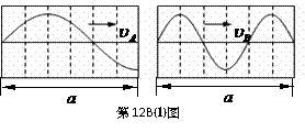 (1)A、B为同一波源发出的两列波,某时 刻在不同介质、相同距离上的波形如图所示。则两列波的波速之比