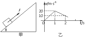 (11分)如图甲所示,质量为m=1kg的物体置于倾角为θ=37°的固定斜面上(斜面足够长),对物体施加平行于斜面向上的恒力F,作用时间t1=1s时撤去拉力,物体运动的部分v-t图像如图乙所示,取g=10m/s2,试求: