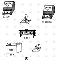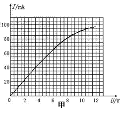 (2)(12分)某同学使用如下器材:电源E(电动势为12V);电压表V(量程为15V,内阻约为15kΩ);电流表A(量程为100mA,内阻约为10Ω);滑动变阻器(最大阻值为50Ω);单刀单掷开关;导线若干。测出了一个小灯泡的伏安特性曲线如图甲所示,已知小灯泡的额定电压为12V。