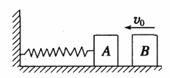 (2)两个完全相同、质量均为m的滑块 A和B,放在光滑水平面上,滑块A与轻弹簧相连,弹簧另一端固定在墙上,当滑块B以v0的初速度向滑块A运动,如图所示,碰到A后不再分开,下述说法中正确的是 。(填选项前的字母)