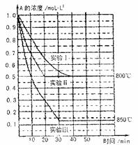 种不同条件下进行的该反应,其中实验I、II都在800°C,实验III在850°C,B、C