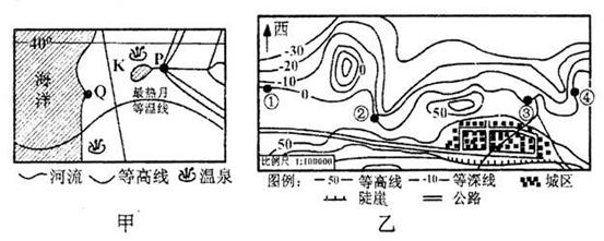 3.根据图中等值线分析,造成甲处等值线弯曲的原因是