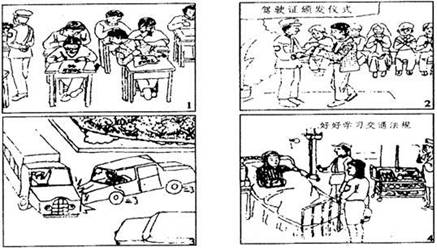 以“Lessons from License”为题,根据以下四幅图,叙述一个年轻人参加驾照考试、获得证书等经历,并谈两点自己的看法。开头已为你写出,不计入总词数。