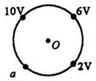 C.O点的场强方向指向a点 D.O点的场强方向指向电势为2V的点