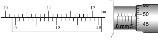 22.(6分)图甲是用一主尺最小分度为1mm,游标上有20个分度的游标卡尺测量一工件的长度,结果如图所示,可以读出此工件的长度为__________m;图乙是用螺旋测微器测量某一圆筒内径时的示数,此读数为 m。