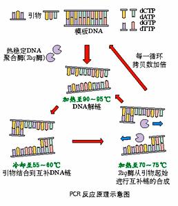 (2)过程:加热至90-95℃DNA解链→冷却到55-60℃,引物结合到互补DNA链→加热至70-75℃,热稳定DNA聚合酶从引物起始互补链的合成。