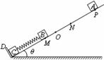 (11分)如图所示,在倾角为θ = 30o 的光滑斜面的底端有一个固定挡板D,小物体C靠在挡板D上,小物体B与C用轻质弹簧拴接。当弹簧处于自然长度时,B在O点;当B静止时,B在M点,OM = l。在P点还有一小物体A,使A从静止开始下滑,A、B相碰后一起压缩弹簧。A第一次脱离B后最高能上升到N点,ON = 1.5 l。B运动还会拉伸弹簧,使C物体刚好能脱离挡板D。A、B、C的质量都是m,重力加速度为g。求:(1)弹簧的劲度系数;(2)弹簧第一次恢复到原长时B速度的大小;(3)M、P之间的距离。w.w.^w.k.s.5*