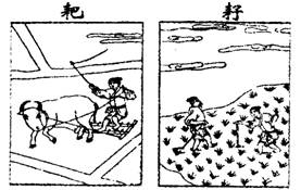 12.右图出自《天工开物》。这一组图反映了中国古代农业生产的什么特点(注:耙:碎土、平地;耔:培土。) ( )