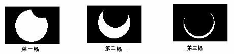 10.2009年7月22日上午,长江流域的居民有幸目睹了罕见的日全食天文奇观,下面是天文爱好者拍摄的三个瞬间,其中白色的圆形是太阳,逐渐覆盖太阳的黑色圆形是月亮。如果把太阳和月亮的影像视作同一平面中的两个圆,则关于这两个圆的圆心距的半径之间的关系的说法,正确的是( )