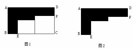 (本题满分7分)现有一块矩形钢板ABCD,长AD=7.5dm,宽AB=5dm,采用如图1的方式在这块钢板上截除两个正方形得到如图2所示的模具,模具橫纵方向的长柄等宽(即BE=DF).若模具的面积等于原矩形钢板的面积的一半,求模具长柄的宽。(参考数据: