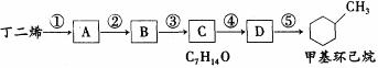 现仅以丁二烯为有机原料,无机试剂任选,按下列途径合成甲基环己烷: