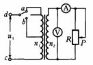 如图所示,理想变压器原、副线圈的匝数比为10 . 1,b是原线圈的中心接头,电压表V和电流表A均为理想电表,除滑动变阻器电阻R以外其余电阻均不计,从某时刻开始在原线圈c、d两端加上交变电压,其瞬时值表达式为