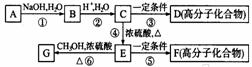 有机物A由C、H、O、Cl四种元素组成,质谱分析知其相对分子质量为198.5,红外光谱分析知其C1在侧链上。核磁共振氢谱有4个峰,峰面积之比是6∶2∶2∶1。当A与C12分别在Fe作催化剂和光照条件下以物质的量之比为1∶1反应时,分别是苯环上一氯取代有两种和侧链上一氯取代有一种;A与NaHCO3溶液反应时有气体放出。A经下列反应可逐步生成B-G。