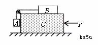 如图所示,长方体物块C置于水平地面上,物块A、B用不可伸长的轻质细绳通过滑轮连接(不计滑轮与绳之间的摩擦),A物块与C物块光滑接触,整个系统中的A、B、C三物块在水平恒定推力F作用下从静止开始以相同的加速度一起向左运动.下列说法正确的是