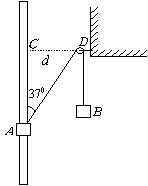 (15分)如图所示,光滑固定的竖直杆上套有一个质量m=0.4kg的小物块A,不可伸长的轻质细绳通过固定在墙壁上、大小可忽略的定滑轮D,连接物块A和小物块B,虚线CD水平,间距d=1.2m,此时连接物块A的细绳与竖直