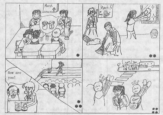 假如你是红星中学高三一班的学生。3月5日是学雷锋日,你班组织了一次帮扶活动。请根据下面四幅图所提供的活动内容和过程写一篇英文短文,为你校校刊英语专栏投稿。短文词数不少于60。