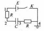 如图所示,一个电容为C的理想电容器与两个阻值皆为R的电阻串联后通过电键K连接在电动势为