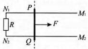 21.如图所示,M1N1N2M2是位于光滑水平桌面上的刚性U型金属导轨,导轨中接有阻值为R的电阻,它们的质量为m,导轨的两条轨道间的距离为l,PQ是质量也为m的金属杆,可在轨道上滑动,滑动时保持与轨道垂直,杆与轨道的动摩擦因数为μ,杆与导轨的电阻均不计.杆PQ位于图中的虚线处,虚线的右侧为一匀强磁场区域,磁场方向垂直于桌面,磁感应强度的大小为 B.已知导轨的N1N2部分离图中虚线的距离为