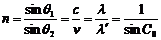 可见光中,红光的折射率n最小,频率ν最小,在同种介质中(除真空外)传播速度v最大,波长λ最大,从同种介质射向真空时发生全反射的临界角C最大,以相同入射角在介质间发生折射时的偏折角最小(注意区分偏折角和折射角)。