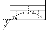 解:如图所示,由于该材料折射率由下向上均匀减小,可以设想将它分割成折射率不同的薄层。光线射到相邻两层的界面时,如果入射角小于临界角,则射入上一层后折射角大于入射角,光线偏离法线。到达更上层的界面时入射角逐渐增大,当入射角达到临界角时发生全反射,光线开始向下射去直到从该材料中射出。