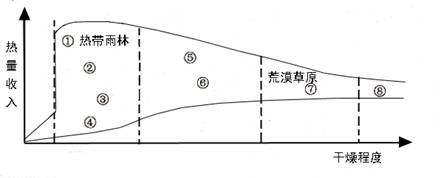 图3为“自然带与水热条件关系图”,图中①-⑧分别表示不同的自然带。读图回答6、7题。