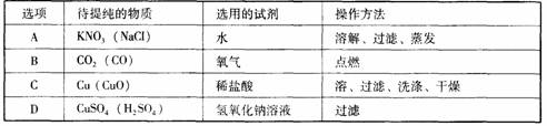 除去下列物质中所含杂质(包括内为杂质),所选试剂及操作方法均正确的一组是( )