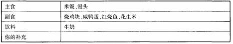 17.下表是小明制定的食谱单,为使营养均衡,在“你的补充”栏可以选填的食物是( )