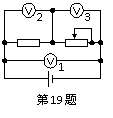 如图所示的电路中,三个电压表对应的读数分别为U1、U2、U3,若移动滑动变阻器滑片后,三个电压表读数改变量的绝对值分别为ΔU1、ΔU2、ΔU3,则 :( AB )