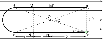”形绝缘导轨竖直放置,处在水平向右的匀强电场中。左边的半圆弧与水平杆ab、cd相切于a、c两点,两水平杆的高度差为h,杆长为4L,O为ad、bc连线的交点,虚线MN、M′N′的位置如图,其中aM = MM′= CN = NN′=L,M′b=N′d = 2L。一质量为m,带电量为-q的小球穿在杆上。虚线MN左边的导轨光滑,虚线MN右边的导轨与小球之间的动摩擦因数为