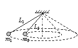 如图所示,两根长度不同的细线分别系有两个小球,细线的上端都系于O点。设法让两个小球在同一水平面上做匀速圆周运动。已知细线长之比为L1∶L2=
