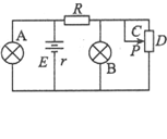 8、.如图所示,A、B为相同的两个灯泡,均发光,当变阻器的滑片P向下端滑动时.则