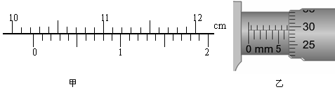 (4分)图甲是用一游标卡尺测量一工件的长度,结果如图所示,可以读出此工件的长度为__________mm;图乙是用螺旋测微器测量某一圆筒内径时的示数,此读数应 mm。