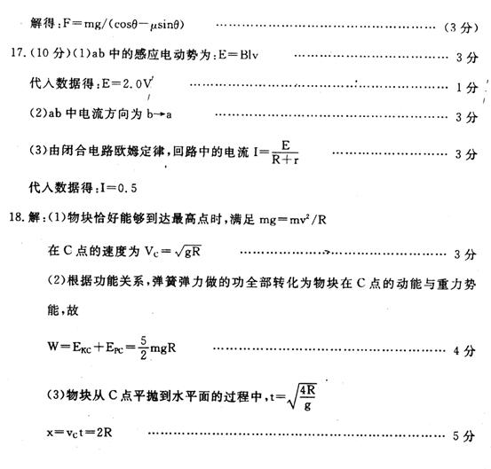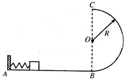 18、(12分)如图所示,光滑水平面AB与光滑半圆形轨道在B点相连,轨道位于竖直面内,其半径为R,一个质量为m的物块静止在水平面上,现向左推物块使其压紧弹簧,然后放手,物块在弹力作用下获得一速度,当它经B点进入半圆轨道,之后向上运动恰能完成半圆周运动到达C点,重力加速度为g。求: