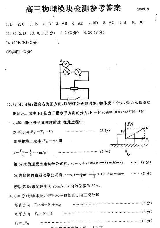 的物体静止在光滑的水平地面上,翼对物体施加大小F=l0N与水平方向夹角