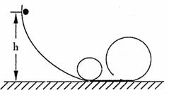21.(10分)如图所示,一条圆弧轨道与大小不同的两个圆环轨道连接在一起,质量为m的小球从高为h处由静止开始滑下,在小环(底部稍错开一些)内侧运动一周后.刚好能通过大环的最高点.若大环的半径是小环半径的2倍,轨道表面光滑,不计空气阻力,重力加速度为g,求