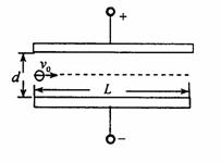 22.(14分)如图,带电平行板长为L,两板间距离为d,板间电压为U,t=0时电子(质量为m、电荷量为e)沿两板中线以速度%垂直电场方向射人,结果刚好能被正极板俘获.
