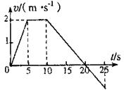 3.某同学站在电梯底板上,利用速度传感器和计算机研究一观光电梯升降过程中的情况,图示的v – t图象是计算机显示的观光电梯在某一段时间内速度变化的情况(向上为正方向)。根据图象提供的信息,可以判断下列说法正确的是 ( )
