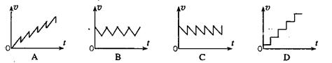 进,球每次被踢出后在草地上做匀减速运动,设运动员一直保持匀速运动,且每次追上球后都用相同的力将球踢出,下列关于足球运动的v – t图像正确的是 ( )