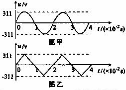 图甲、图乙分别表示两种电压的波形,其中图甲所示电压按正弦规律变化。下列说法正确的是 ( )