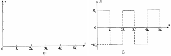 (2)请在图甲中画出x=0至x=4L区域内电子在磁场中运动的轨迹,计算电子通过图中各磁场区域边界时位置的纵坐标并在图中标出;