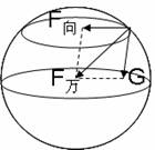 ⑴产生:重力是由于地面上的物体受到地球的万有引力而产生的,但两者不等价,因为万有引力的一个分力要提供物体随地球自转所需的向心力,而另一个分力即重力,如右图所示。