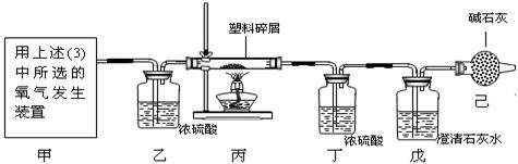 (4)某化学研究小组的同学欲对某种塑料袋的组成进行分析探究(资料显示该塑料只含C、H两种元素),他们设计了如下图所示的实验装置,使该塑料试样在纯氧中燃烧,观察实验现象,分析有关数据,推算元素含量。