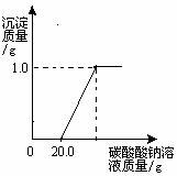 (6分)某班同学在做完“二氧化碳的制取和性质”实验后,废液缸中盛有大量的盐酸与氯化钙的混合溶液(不考虑其它杂质)。为了对废液进行处理,某同学做了如下实验:取废液缸上层清液20.0g于烧杯中,逐滴滴入溶质质量分数为5.3%的碳酸钠溶液至过量,滴入碳酸钠溶液质量(/g)与生成沉淀的质量 (/g)的变化关系如图所示。(计算结果精确到0.1%)