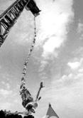 右图是某位游客蹦极时的照片,下列对这位游客落至最低点时的分析不正确的是( )