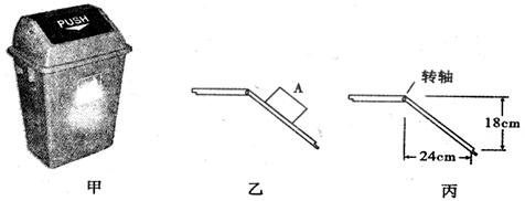 (3)桶盖的相关尺寸如图丙所示,且已知桶盖中心偏离转轴距离2cm。若要让质量为10g以上的果皮在桶盖的斜面上下滑时能压翻桶盖自动落入桶中,在不计摩擦力的情况下,请你估算桶