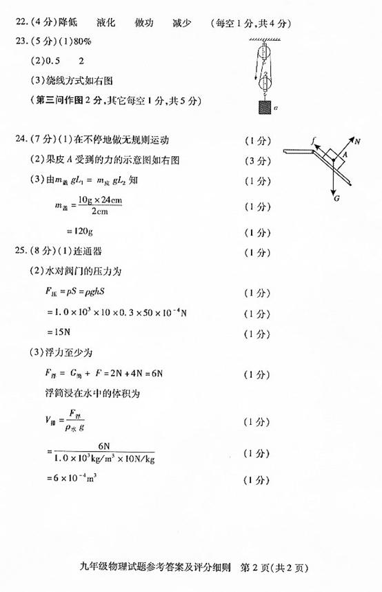 (3)进水管停止向水箱注水时,浮筒浸入水中的体积为多少?(请写出必要的计算过程)
