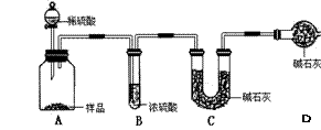 甲:用 ▲ (填实验仪器)称取10.0g样品,利用上图所示装置,测出反应后装置C中碱石灰增重3.52g。装置D中碱石灰的作用是 ▲ 。