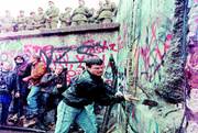 18.以下两图反映了欧洲某一城市的变化。其中,图一摄于1961年8月,图二摄于1989年11月,它们分别反映的是
