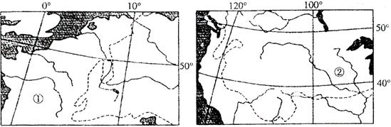 29.下而两图(图 18 、图 19)中的虚线为一月份O℃等温线,读图分析回答相关问题。( 10 分)