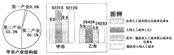 材料二: 2009年甲市与乙市企业人工成本比较图(图21)